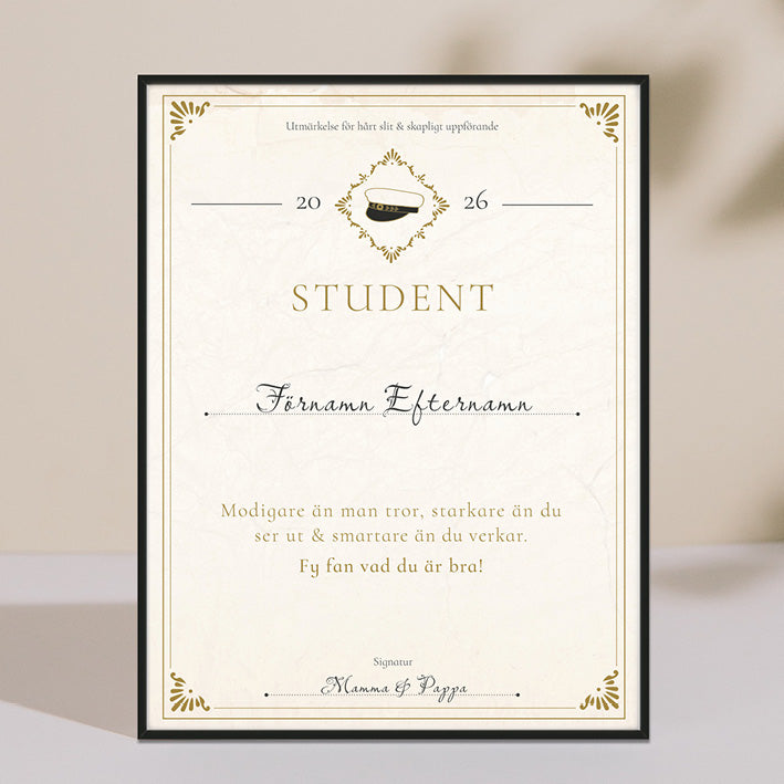 Ge ett personligt och roligt diplom som studentpresent. Trycks med studentens namn och valfri signatur.